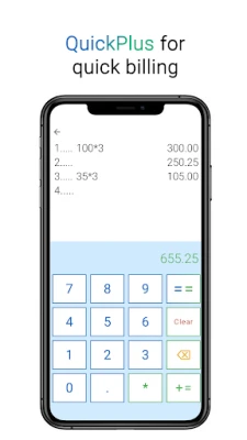 2. QuickPlus calculator: Handy calculator for quick billings. It adds numbers in a list-format. Ideal for calculating bills at shops and shopping bills at home. It efficiently handles retail cash counter calculations, verifies your shopping bills, sums up cash notes and does much more.