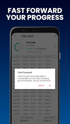 - Fast forward allows app to update your debt to current status as if you were following initial plan