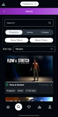 Within the App, find your saved and favorite classes and track your individual progress within programs you’ve started.