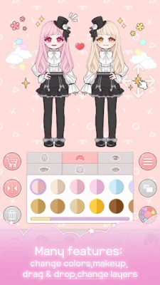 4. There are many available features such as changing the color, makeup, changing layers, drag & drop, pretty animations, and ample storage space.