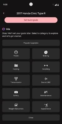 2. Chat with Mia about your car customization goals