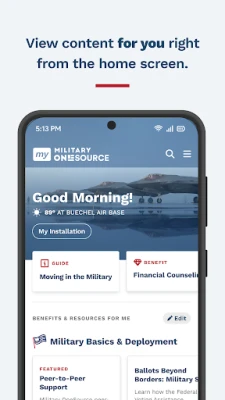 • Personalized support: Get quickly to the information that applies to you. Choose service member, military spouse or family member, service branch and installation to get the most relevant results.
