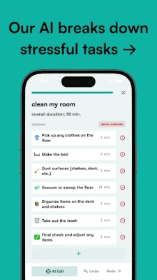 With ADHD, even small tasks can feel huge. Our AI list maker understands this and helps you break down those big, scary tasks into manageable steps. No more ADHD task paralysis. Just add a to-do, and our AI generates a checklist—estimating how long it will take and organizing it into your planner. One tap turns it into a simple, step-by-step list that’s easier to tackle.