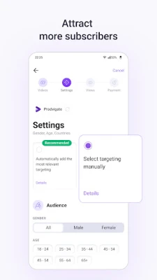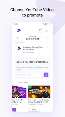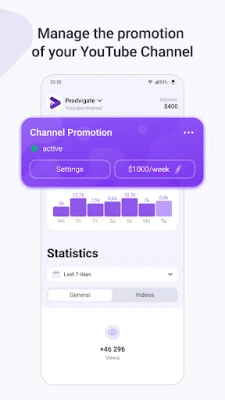 The ability to promote your YouTube channel is just a click away. The Prodvigate app will allow you to do the following: