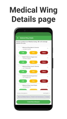 In case of blood requirement, users can contact the medical wing after submitting the patient details