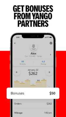 More trips, higher income! Achieve weekly targets by completing a certain amount of trips and get rewarded with good bonuses from Yango Pro partners.